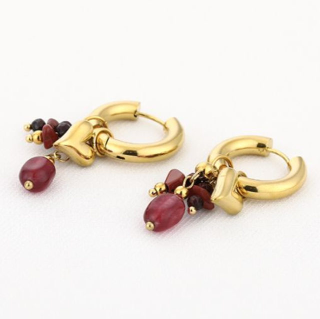 Oorbellen kralen met parel en hartje bruin