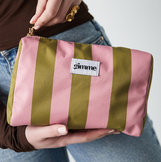 Toilettas groot gestreept groen/roze