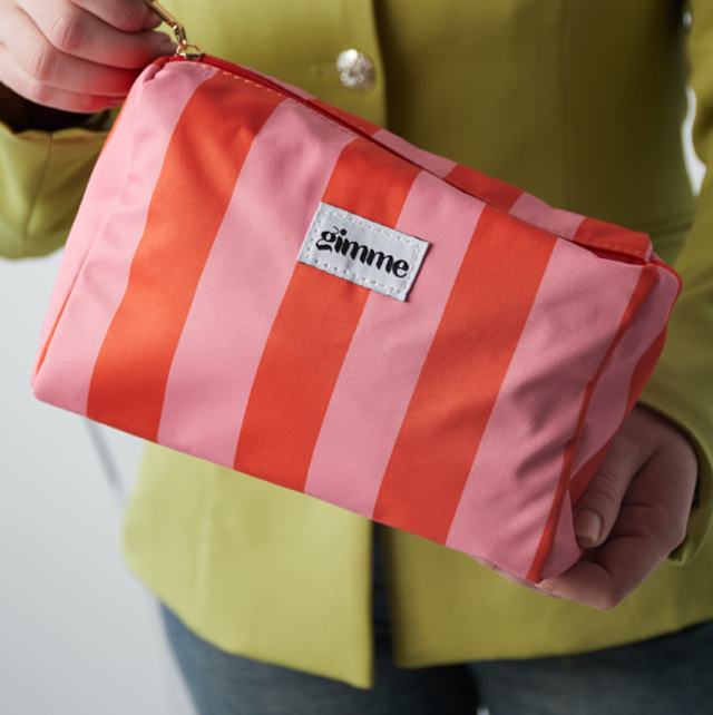 Toilettas groot gestreept oranje/roze